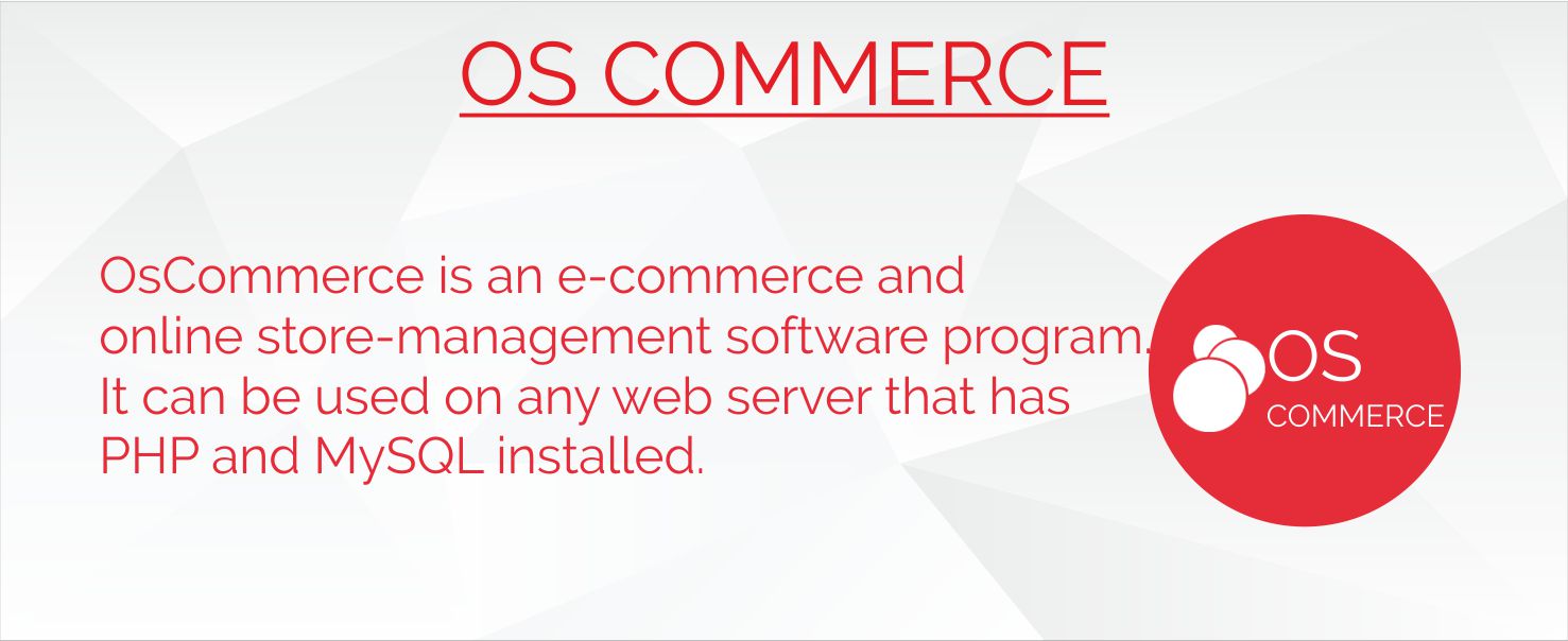 OsCommerce is one of the best Open Source solution available today for e-commerce development. Powerful yet totally customizable e-commerce shopping cart solution to handle dedicated environment of your online business released under GNU General Public License. It runs on mostly any PHP-enabled web server and on any environment supported by PHP and MySQL (Linux, Microsoft Windows, Mac OS, Solaris, and many others).